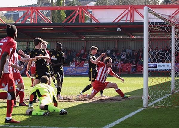 We have created some new printed boards which have been placed around the side of the pitch advertising our services and which we are sure will engender some excellent publicity and interest in our services. You can just make out one of the boards in the picture above, right in the net of the goal as Accrington Stanley are scoring yet again. And below is another picture taken of one of the perimeter boards.